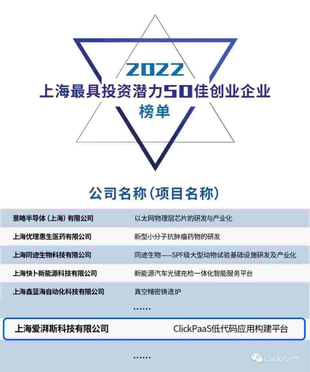 圆梦钱包 作为国内低代码PaaS平台的领军企业,,,,与120家创企入围角逐。。。期间接受了来自德同资本、、、、领中资本等知名投资机构的10位投资人组成专家评委团的背靠背盲选。。。并最终入围“2022上海最具投资潜力50佳创业企业”榜单,,被列入“上海市重点培育创业企业库”。。。。