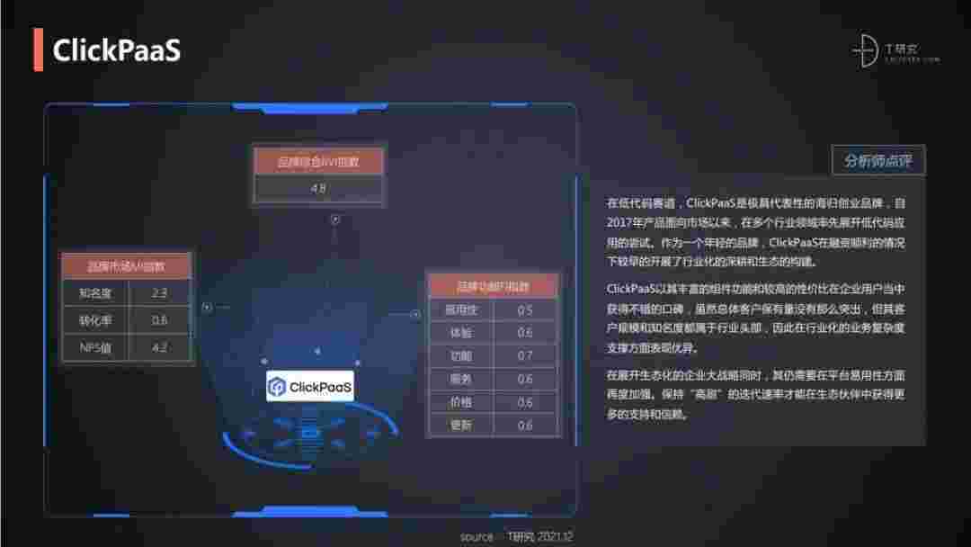 T研究认为,,在低代码赛道,,,圆梦钱包是极具代表性的海归创业品牌,,,,自2017年产品面向市场以来,,,,在多个行业领域率先展开低代码应用的尝试。。作为一个年轻的品牌,,圆梦钱包较早的开展了行业化的深耕和生态的构建。。。。圆梦钱包以丰富的组件功能和较高的性价比在企业用户当中获得不错的口碑,,在客户规模和知名度都属于行业头部,,因此在行业化的业务复杂度支撑方面表现优异。。
